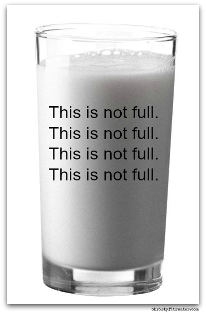 I said, It makes me anxious if it’s not full. When I was growing up, if the cup wasn’t fuuullll, dad would let me know it and bring me back to do the job right. In our house there was no short-changing a guy on a cup of milk or water or any other beverage.